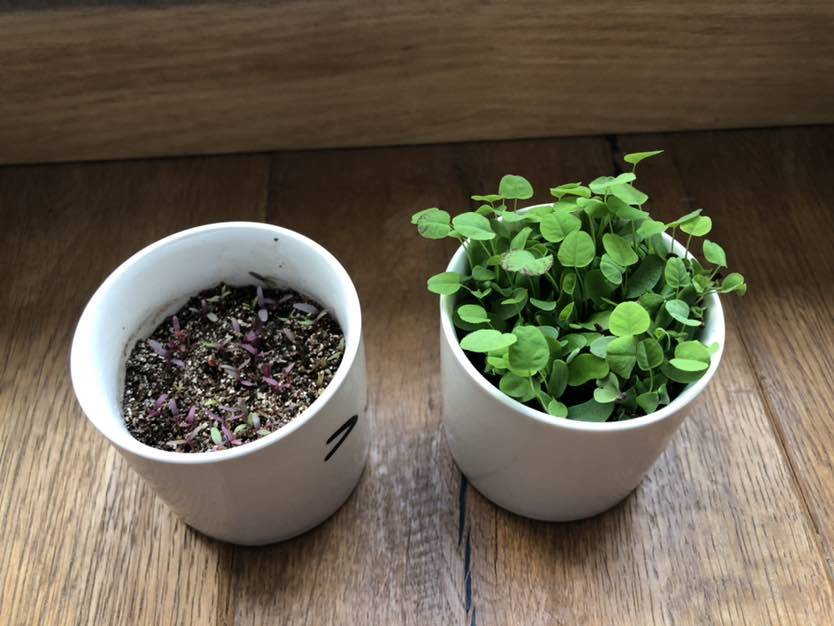 我养的盆栽,一盆很茂盛了,一盆刚出芽