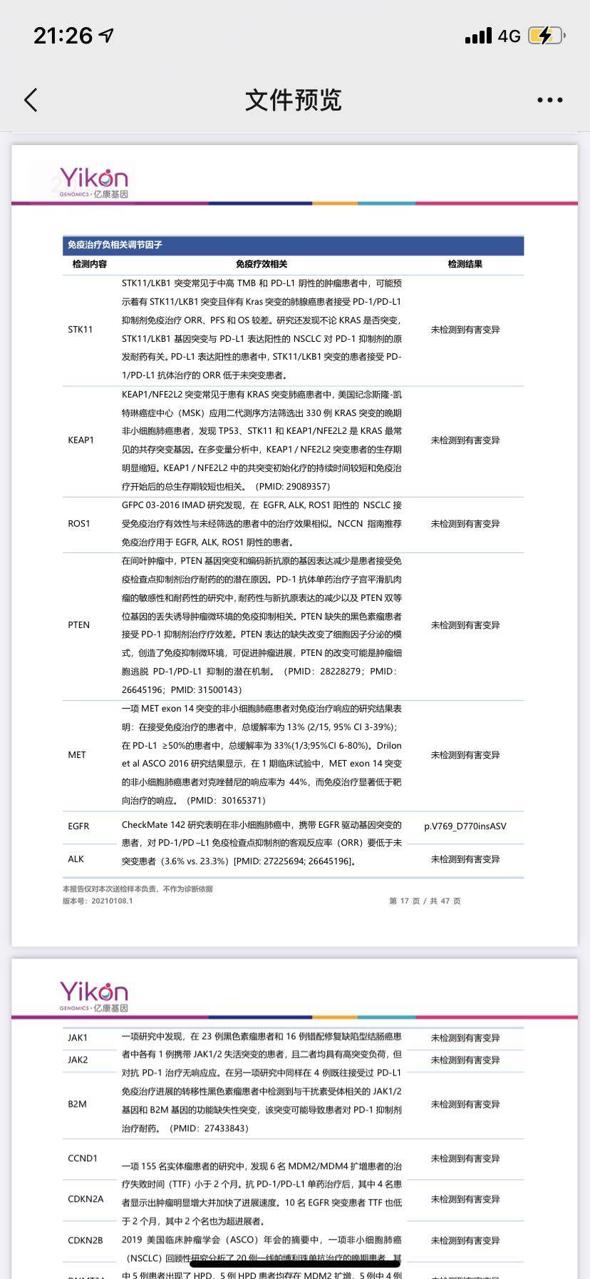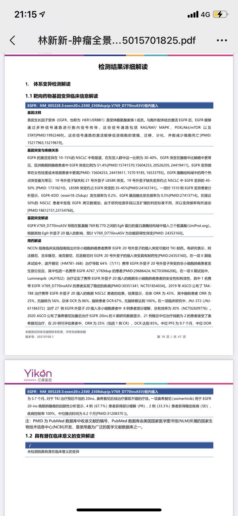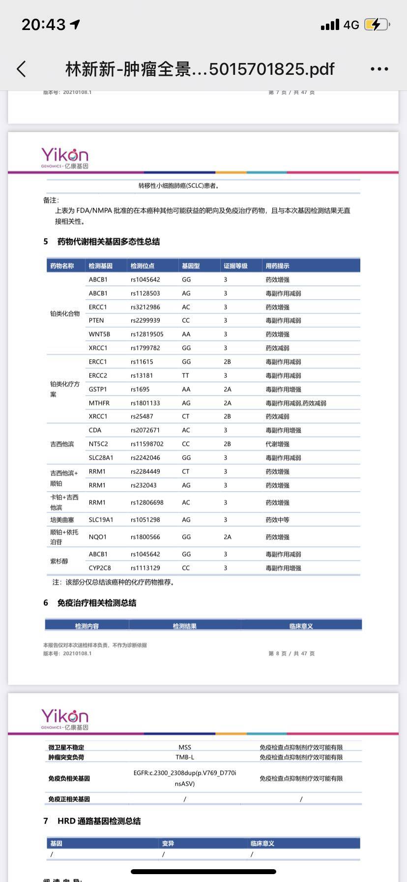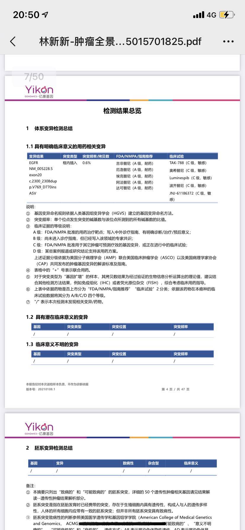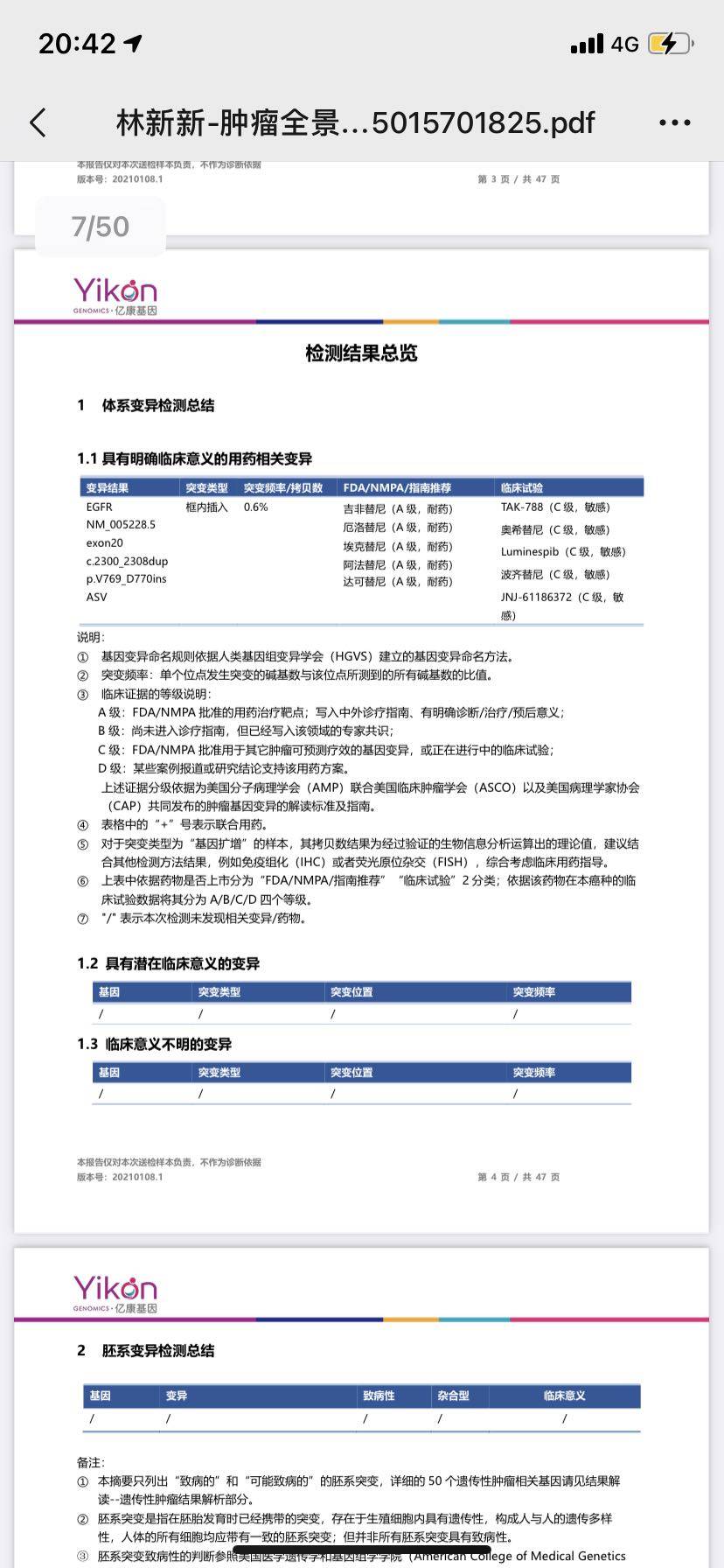 明天6417又要加量吃了!妈妈的体感又有一点不爽,我每天察言观色也是好累,她还嫌我烦哈哈!之前做了全基因检测,依旧还是egfr20ins突变,现在这几天一直在找后路,找了几个医生,感觉也是很迷茫,希望能有懂得的大神帮我看一下,我想给妈妈上免疫,但是得到很多不建议的声音。