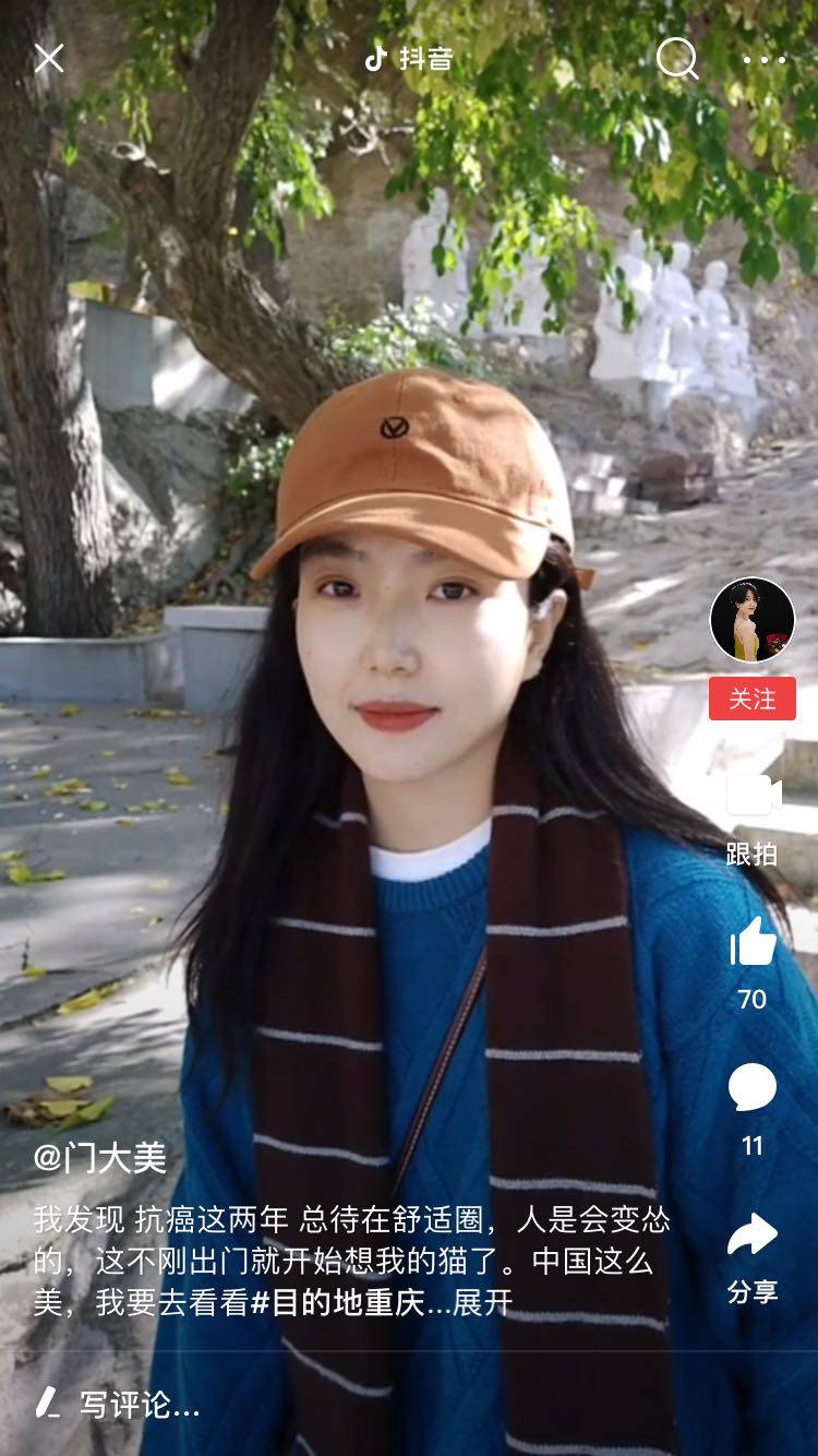 我和大美差不多同时期邂逅乳腺癌,最开始她直播的时候,几乎没人,这几年,刷抖音偶尔会看到她,都是美美的,昨天看见她又开始化疗了,真的很难过