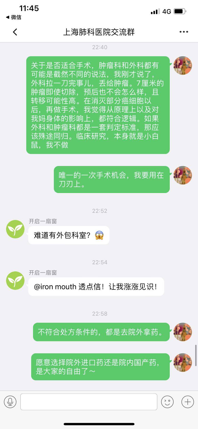 昨天首次发帖,收获大家满满祝福,深为感动,我也把这个帖子转进了上海肺科医院的组群。引发了一场很有意思的讨论。