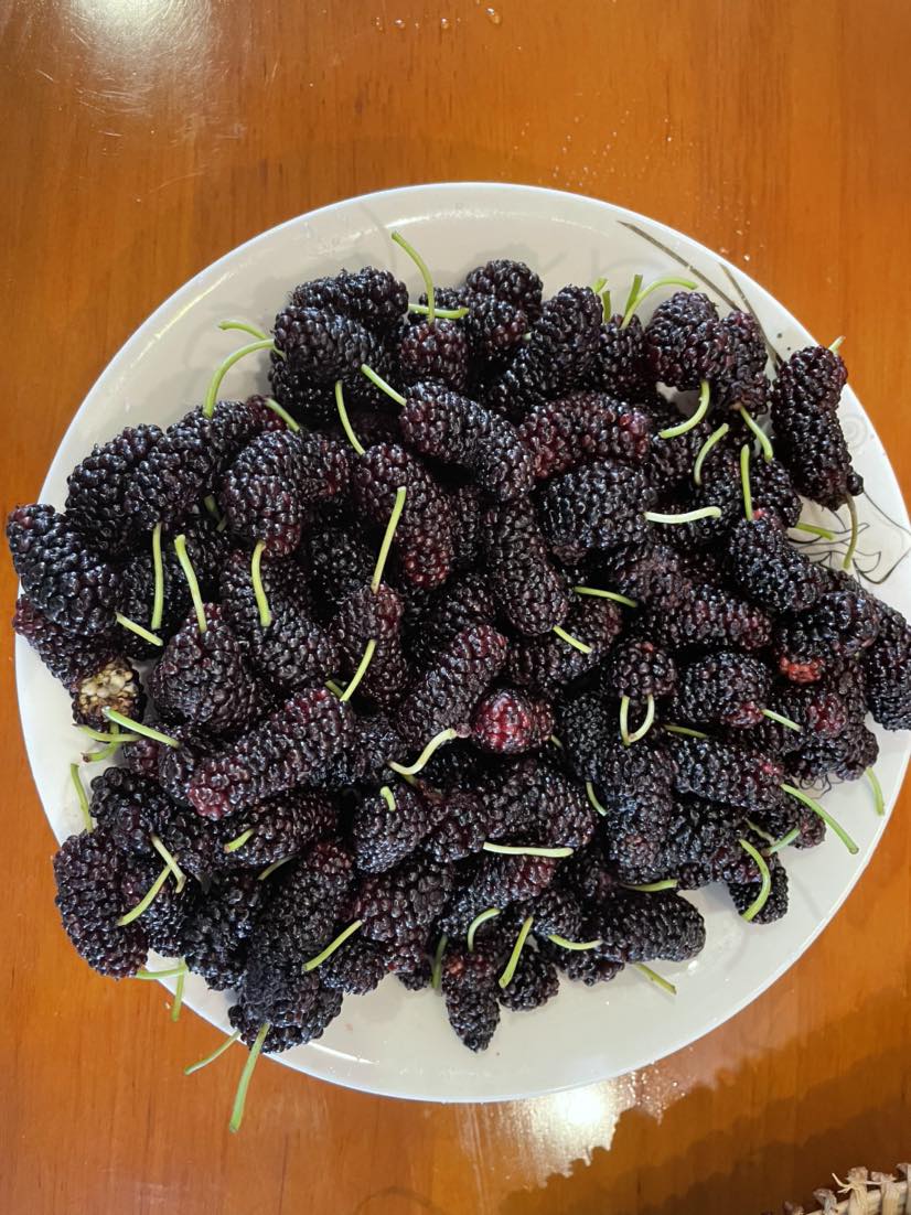 四川最美的四月,也是吃货的季节。刚红甜了樱桃,又紫熟了桑葚,即将黄澄枇杷。今天吃桑葚把舌头都染乌了。我嫂不提醒我还真没注意我们好贪吃,天天都如饕餮大餐,体重蹭蹭蹭往上涨,再涨就该减肥了。