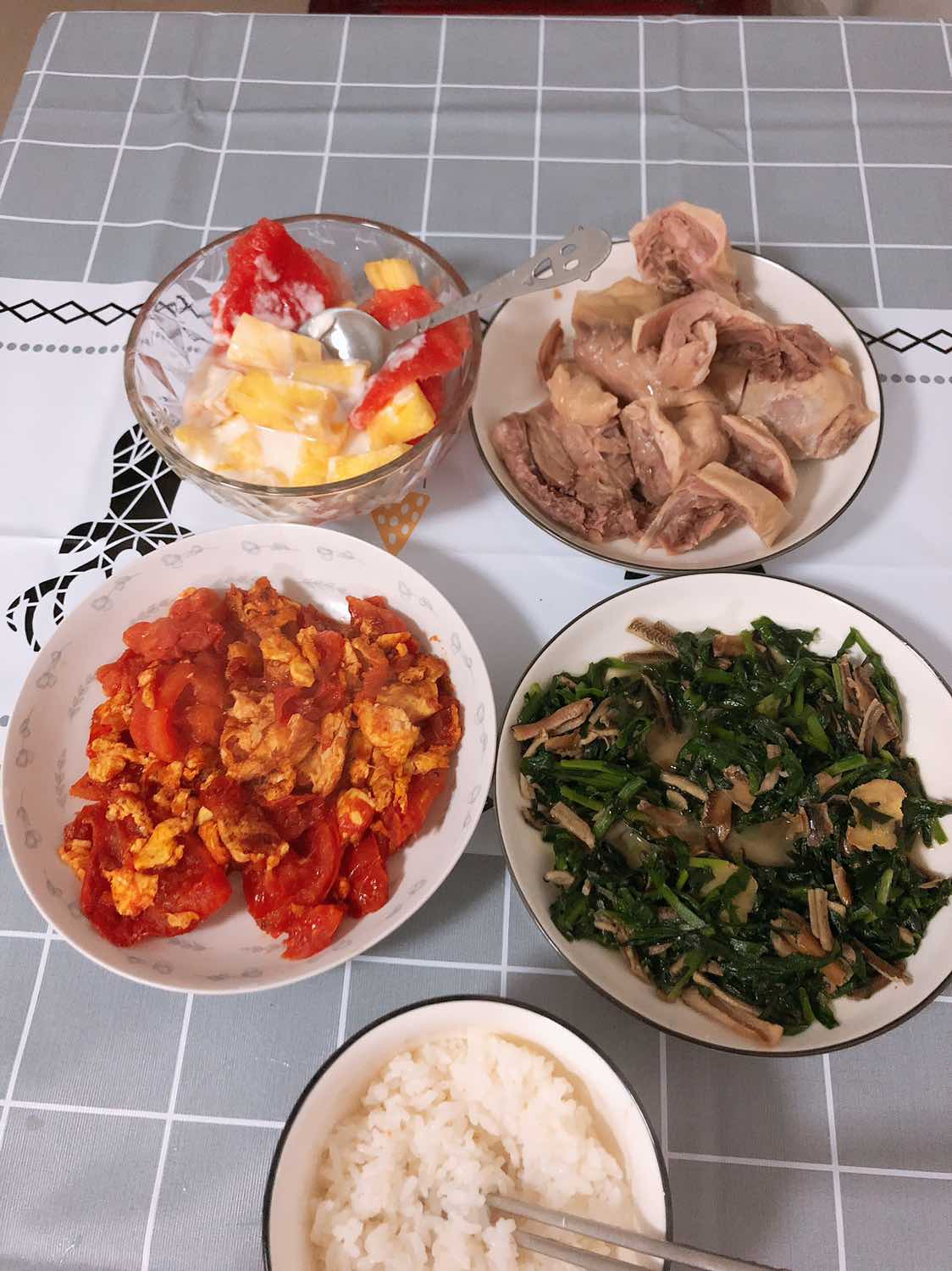 现在一个人租着两室一厅的大房子,哈哈,我一个人做了好多菜,享受会儿一个人的生活。