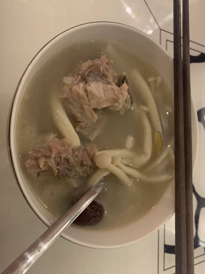 下图附上我亲爱的母亲,给我做的升白大补汤!
