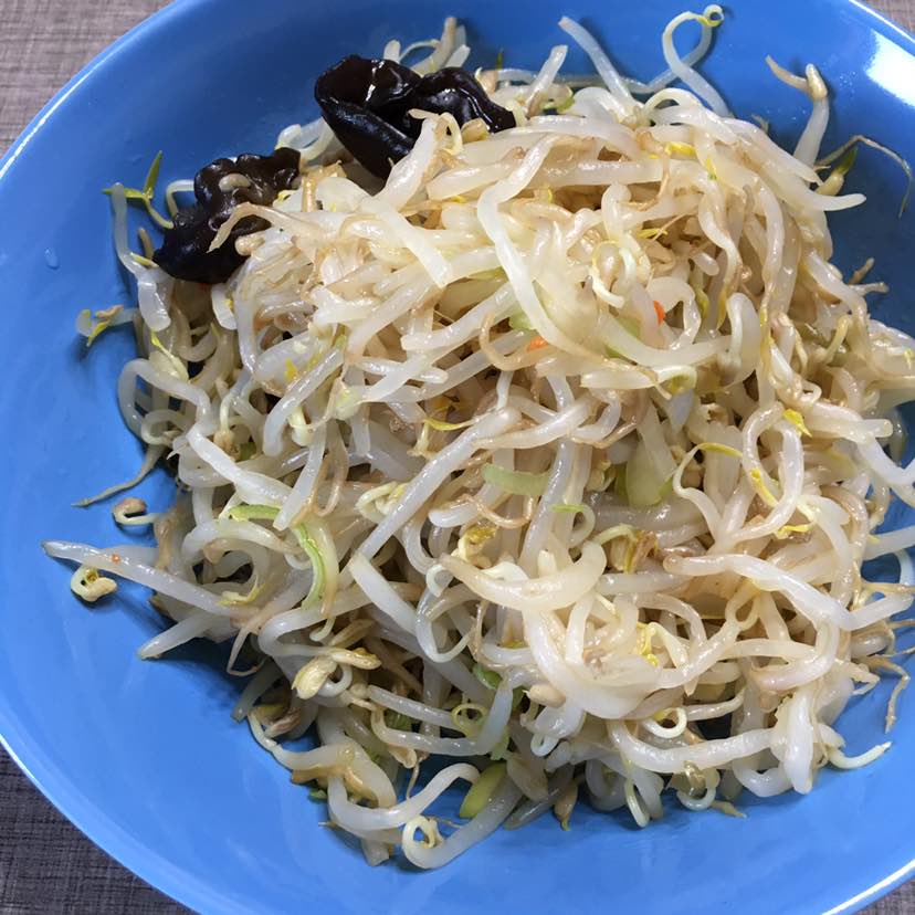 凉拌绿豆芽,绿豆芽是自己生发的。放点盐和橄榄油及葱末拌匀即可。