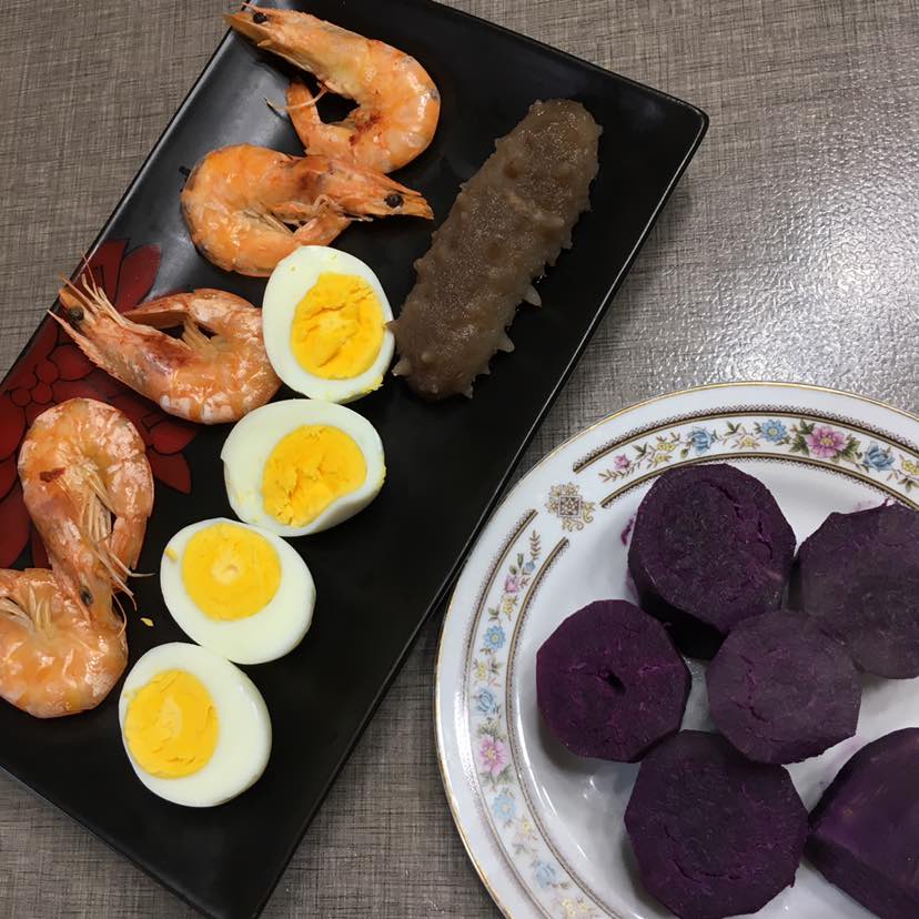 大虾🦐水煮蛋🥚海参和紫薯🍠