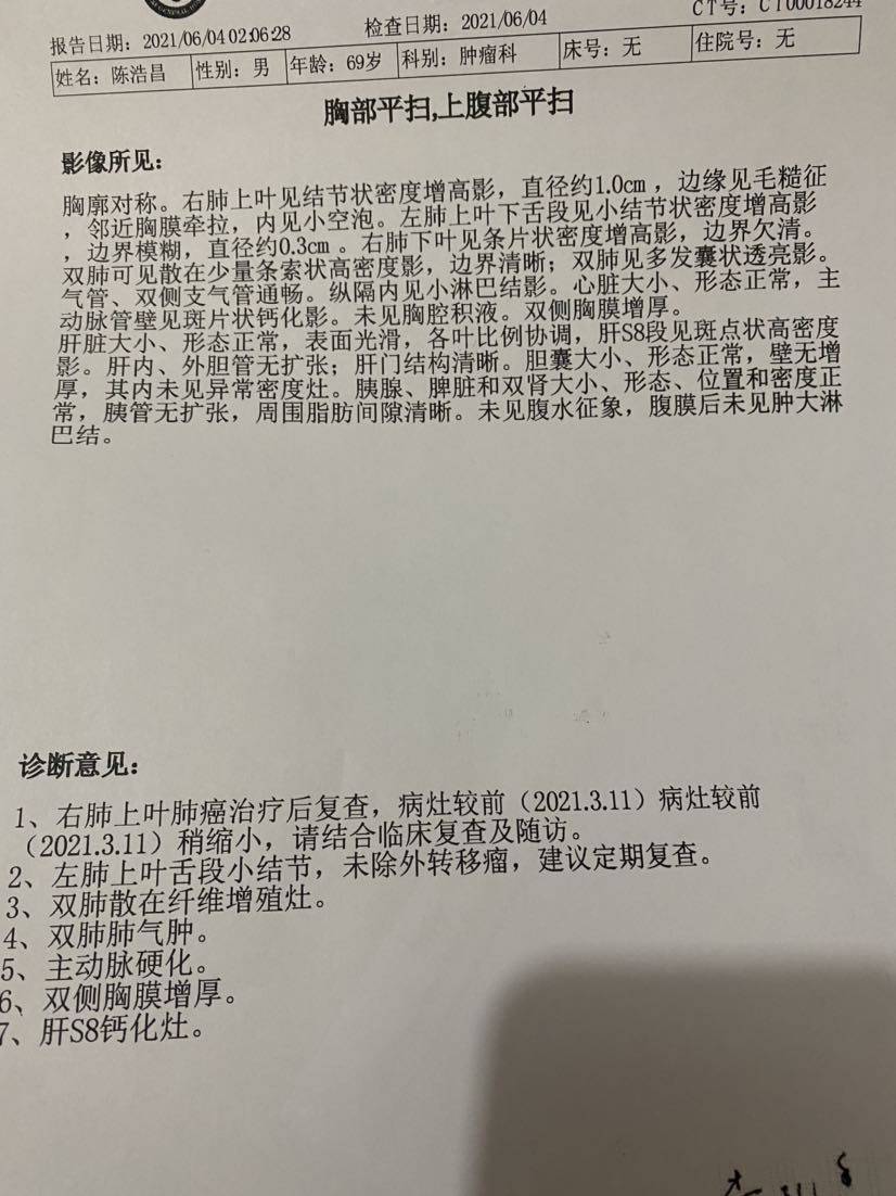 爸爸确诊病情已经有11个多月了。一共做了8次大化疗,2次小化疗,以及35次放疗,上月返医院检查“瘤子”没有了。这一路走来,有多少的艰辛与泪水。在这里与大家分享爸爸的治疗过程。起初,拿到病例报告的时候,