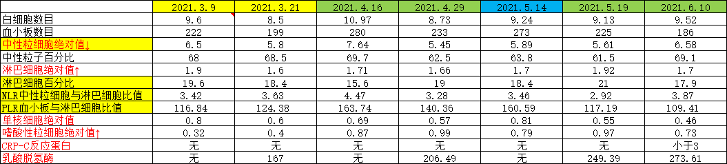 翻看百度说联合化疗此值对于免疫是否起效意义不大,因为化疗药物本身会对中性粒细胞的计数产生影响,所以从第五次治疗即第一次单免疫开始计算的话,m爷爷的单免疫期间nlr确实是一直降低的,百度说此值呈降低趋势,预示单免疫起效。