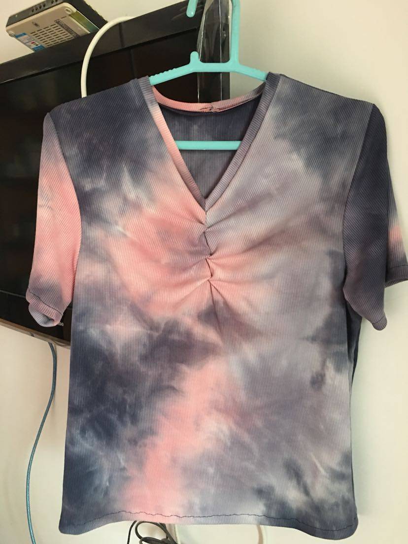 刚做好的面膜t短袖,面料软穿着很舒服,亚麻的短裤