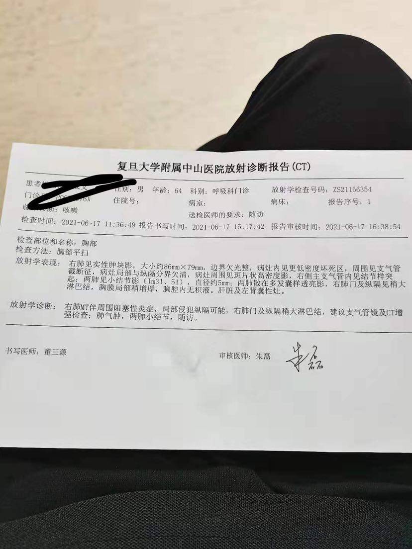 今天天气很好,因为在家等床位,所以我去上班了,在上班空闲之余一直在查有什么好的专家,下午等到中山医院的电话,可以入院了,心里稍微踏实了点,并且那个pet报告也出来了,很厚的一本,也看不懂,等待明天入院问医生,家人也打电话安慰我,加油,未来的日子还很长,附一张ct报告,