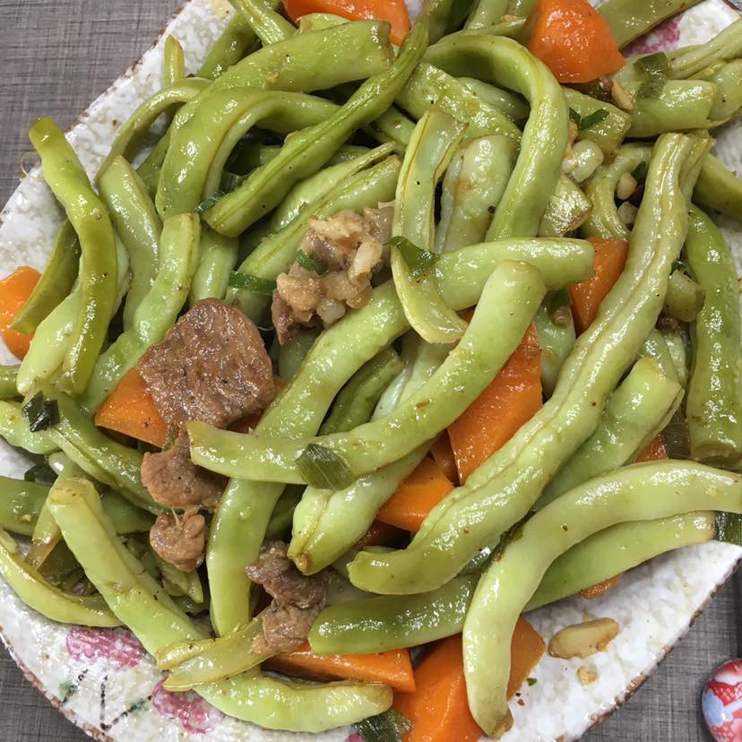 豆角胡萝卜烧肉好吃啊👍