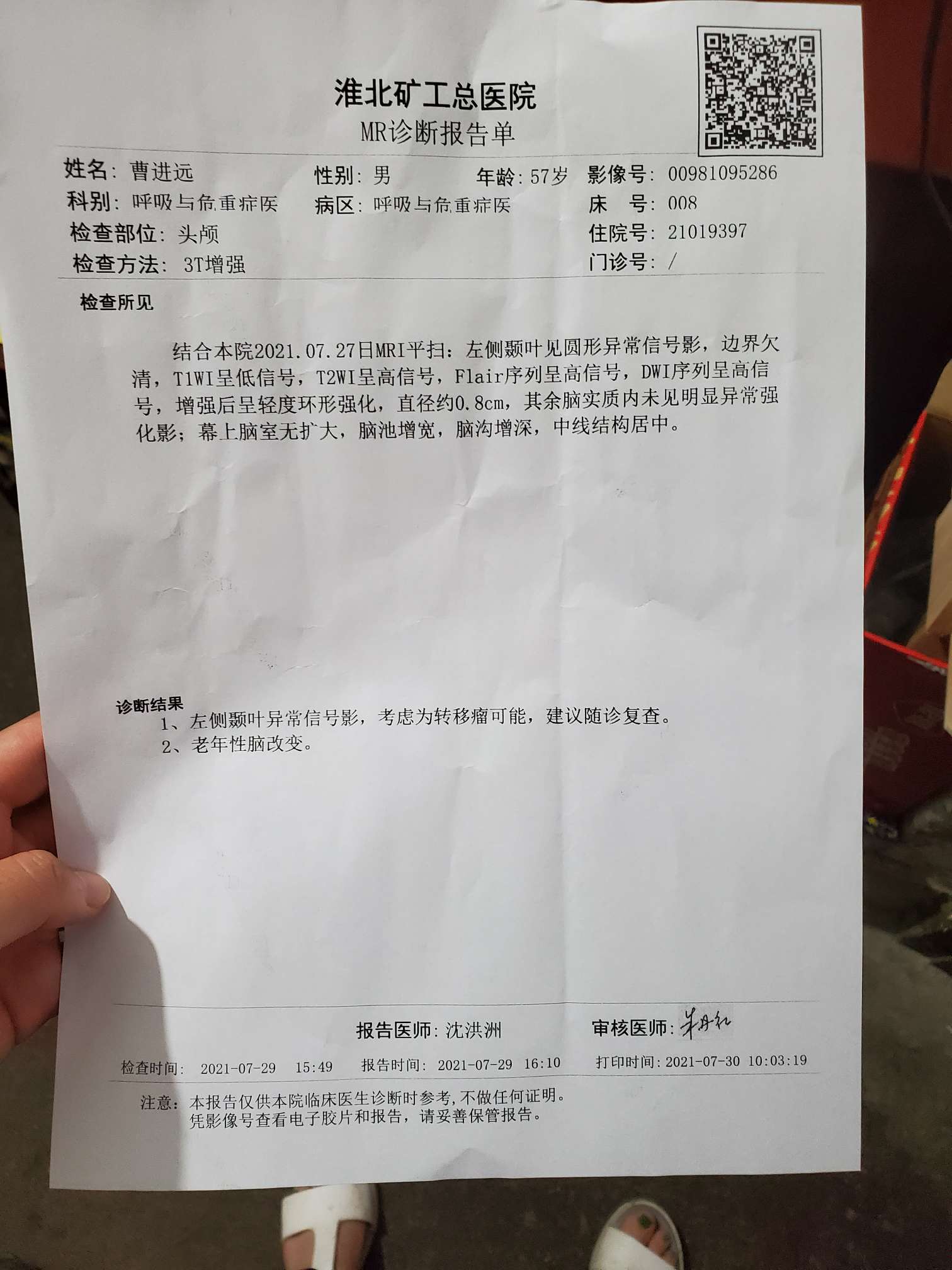 7月28日,进行第三次卡瑞利珠+卡铂+培美化疗。半年一次的脑部磁共振也该做了,其实也算大半年没做了,这次出院顺便给做了,但是结果意料之外。大半年前做的还都正常。怎么现在就脑转了?平时头部没有异常的感觉。胸部不知道下一步怎么治疗好呢,化疗方案要不要继续?同时对脑部放疗好呢?还是吃点能入脑的药呢,又有哪些药好呢?