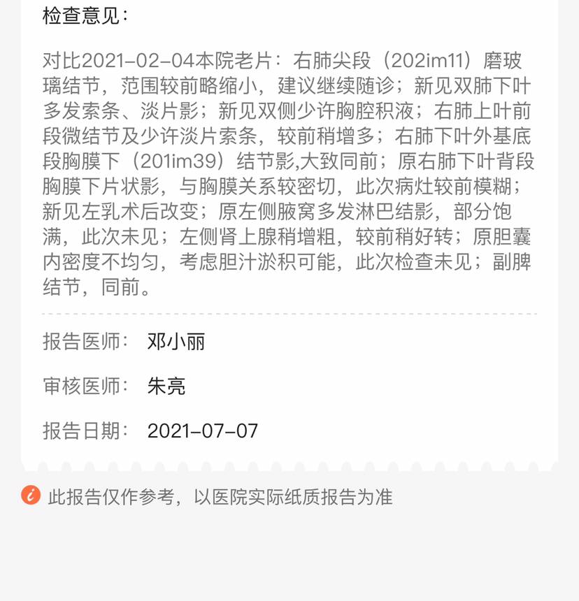 2021.8.9住院后医生联系我,说看到CT上双肺多发结节,问我之前有没有。