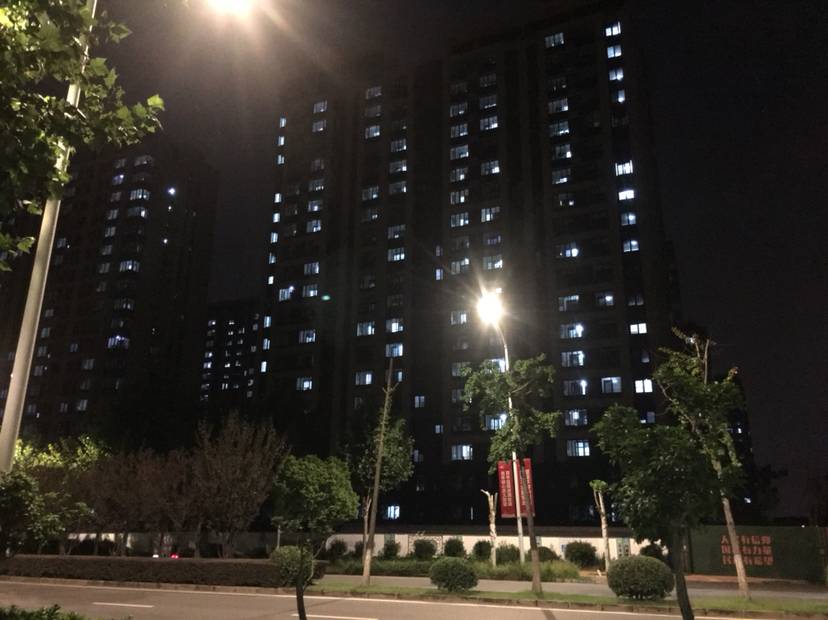 我现在住的附近有个隔离点,是新建的装修好的还未入住的公寓楼,十几幢高楼住满了人,我晚上散步去顺便照的