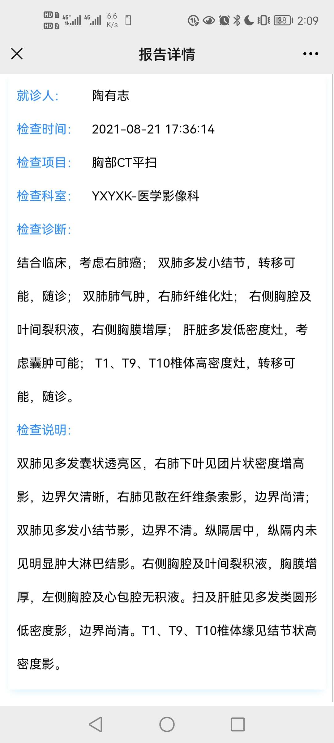 昨天第一次来复查 医生说结节少了 表示药物应该有效 但是得两个月才能知道结果 下个月要早点过来拿药