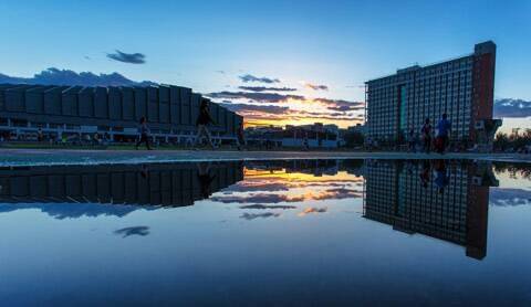 照片拍得很好,晚霞,天空,房子,倒影,浑然一体!