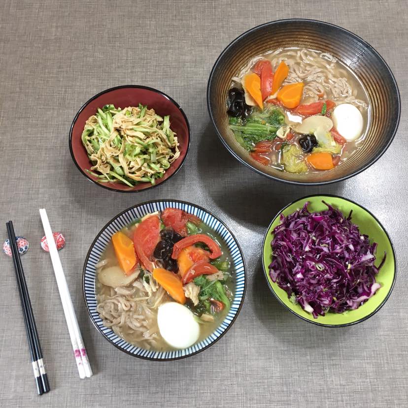 今天早上吃手擀杂粮面条,放入白面,荞麦面和绿豆面还有燕麦面做面条。汤中放了几样青菜,杂就是健康饮食的灵魂😄鸡蛋是补充蛋白质最优质的食物。