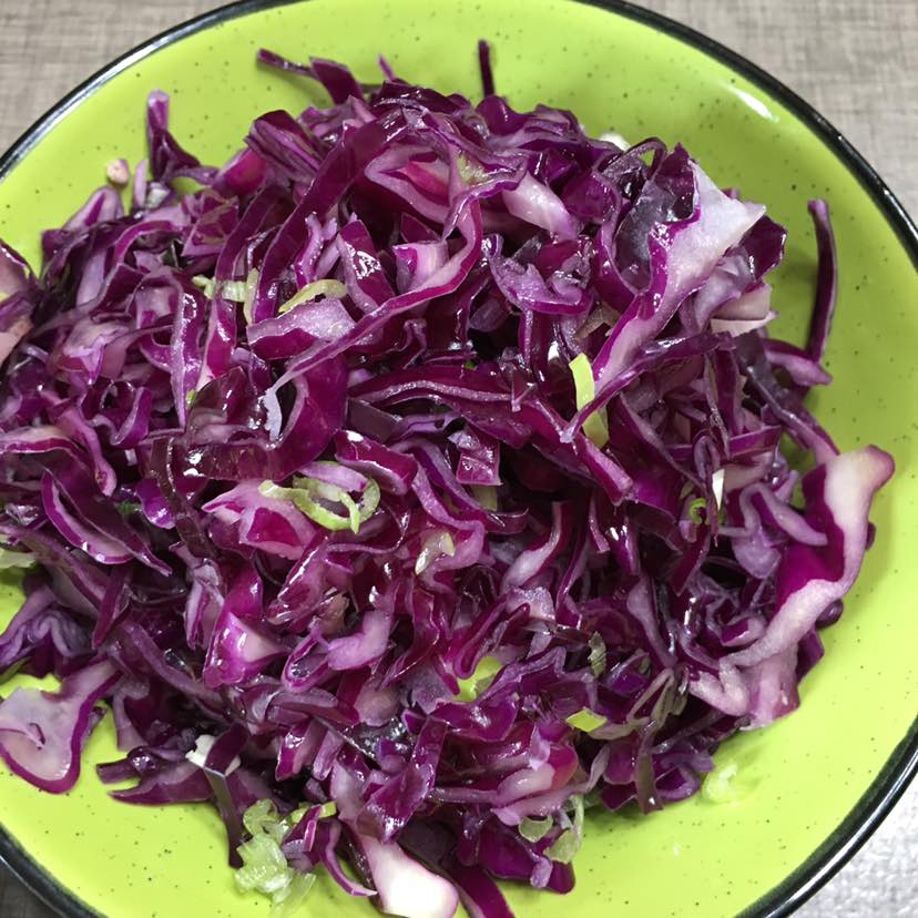 橄榄油拌紫甘蓝,这道菜的做法很简单,把紫甘蓝切丝腌制一会,然后用纯净水过滤,沥干水分放入葱末和橄榄油拌匀就好。简单健康快捷。