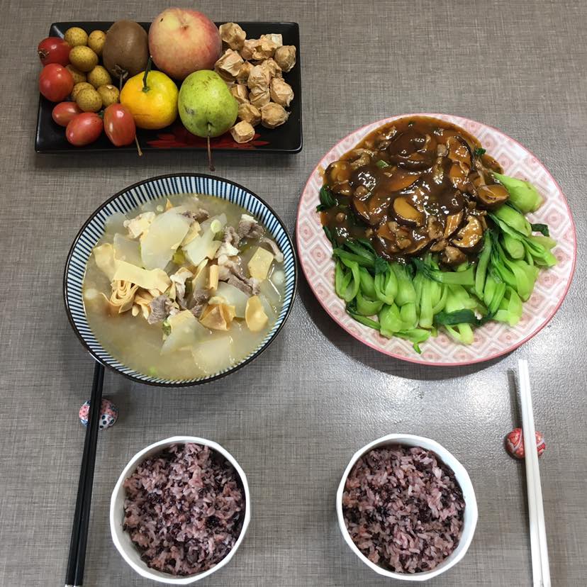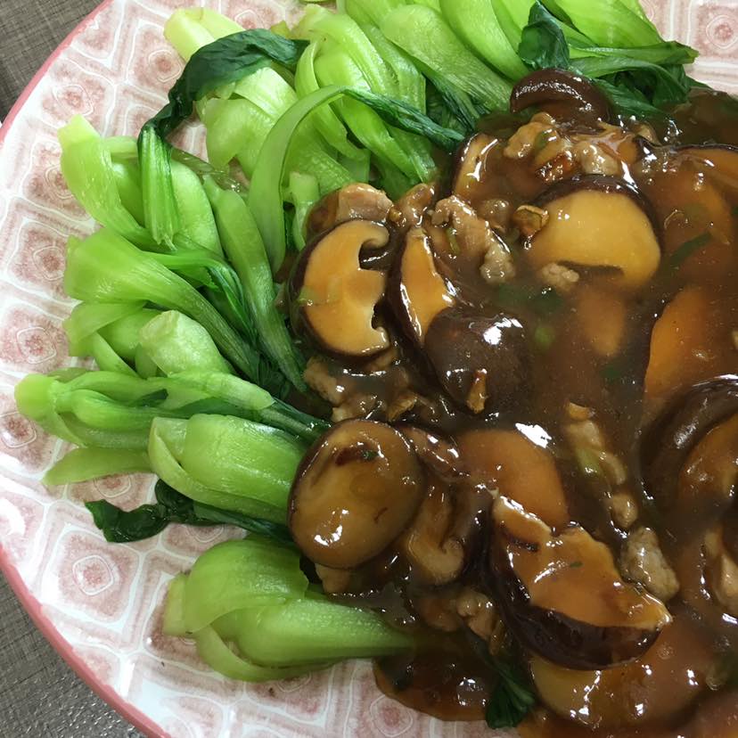 今天没有出去买菜,家里冰箱还有点菜。做了一个香菇油菜。