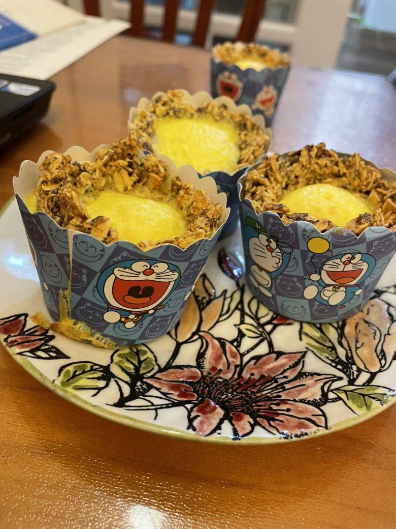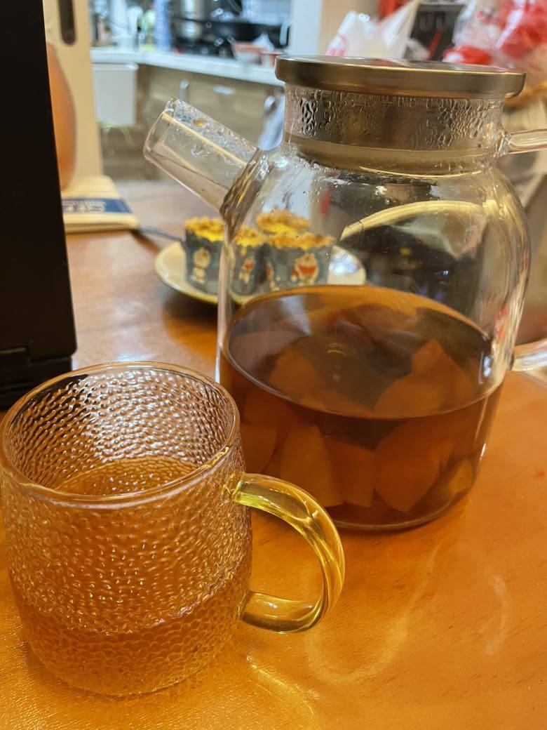 给他烤了蛋挞,煮了苹果茶,成功的把他也带偏了。。