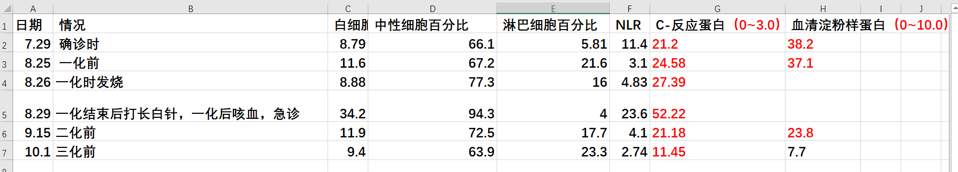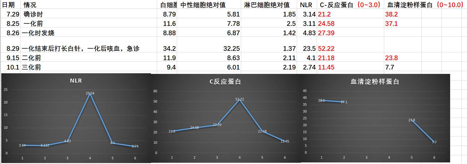 烂漫的树叶6819上面nlr画错了,不过我家有加化疗方案,nlr没啥意义,有一个指标就是血清淀粉样蛋白,回到了正常值