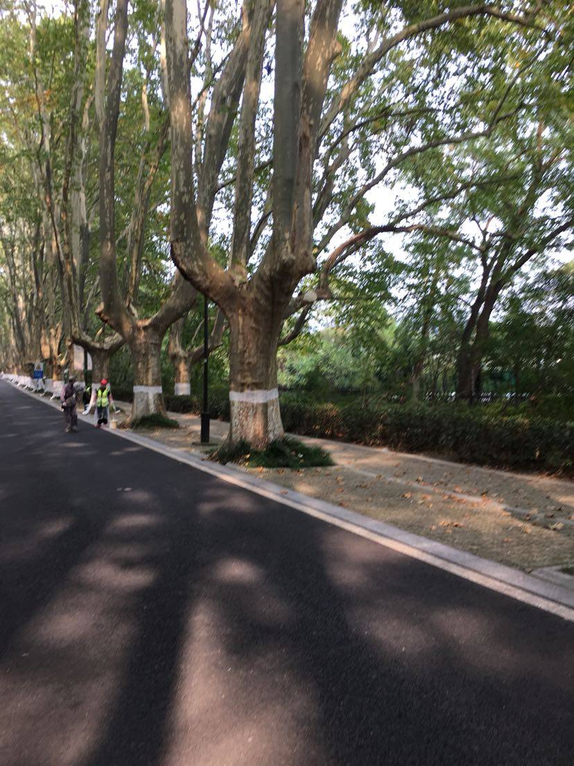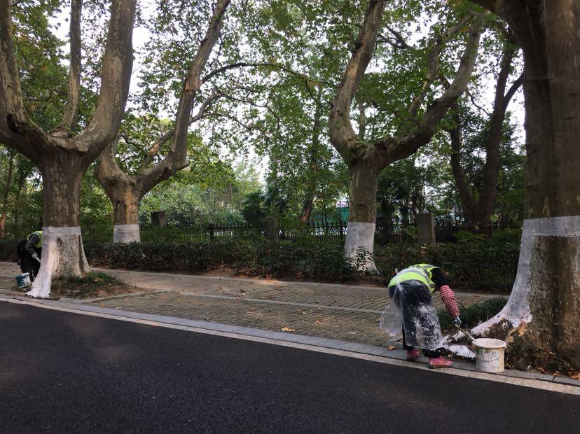 路上随手拍拍拍,冬季到来前,园林工人正在给法国梧桐树穿上防寒服