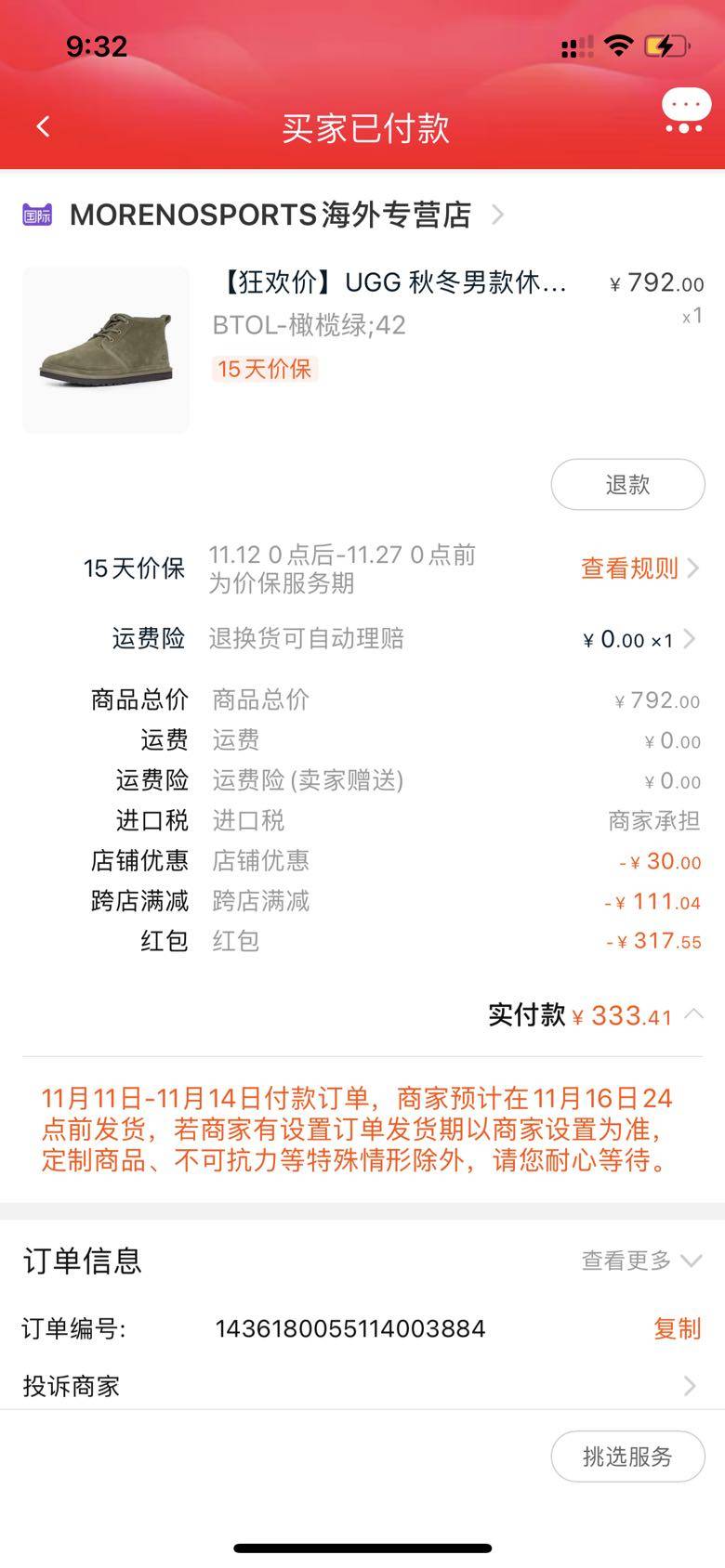 也不知什么时候领到一张520的优惠券,给孩子买的UGG鞋优惠了三百多,很超值。止不住整了22个订单,这一次的双十一还是没躲过。