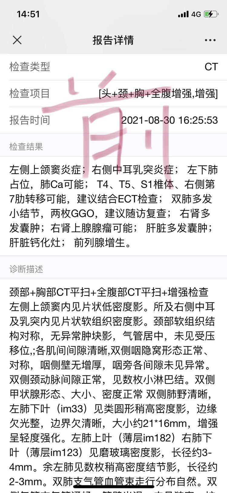 三个月治疗今天开始第一次复查,结果如下: