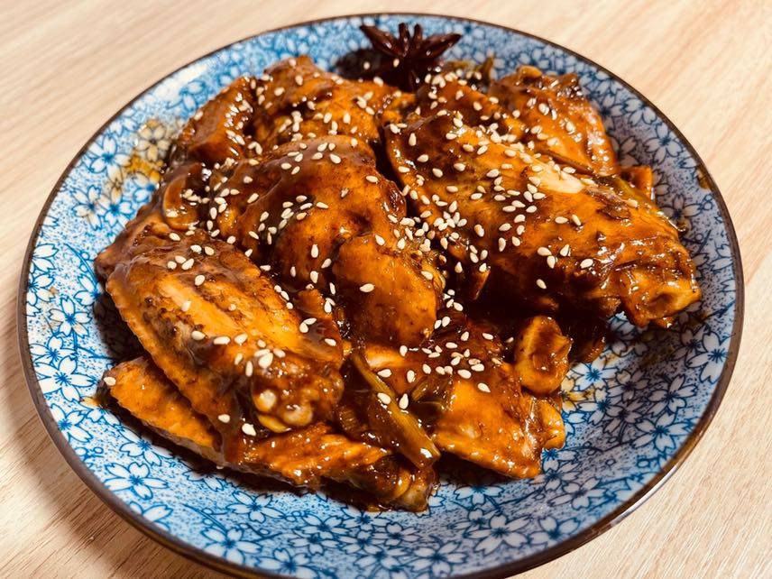 可乐鸡翅 和 洋葱炒鸡蛋 吃的时候热一盒 糙米饭