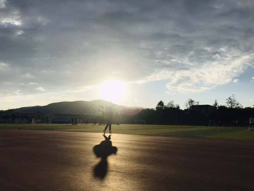上午依然跟大部队练太极,因为经历了前天的上吐下泻,体力似乎有点掉线。下午我还是决定通过运动,把体力提上来。午休后吃过水果出门去球场,球场有八道赛道,以跑满八个赛道为目标,总量不变,调整速度,第一圈没跑完就累了,我知道这是长期不锻炼的原因,于是尊重身体,以走路完成剩下的赛道,到第三圈,身体开始轻松进入状态,接着完整地跑一圈,再减速,再加速,反复操作,身体越来越轻盈,八圈勉强完成,随后瑜伽拉伸,今天的任务完成啦。