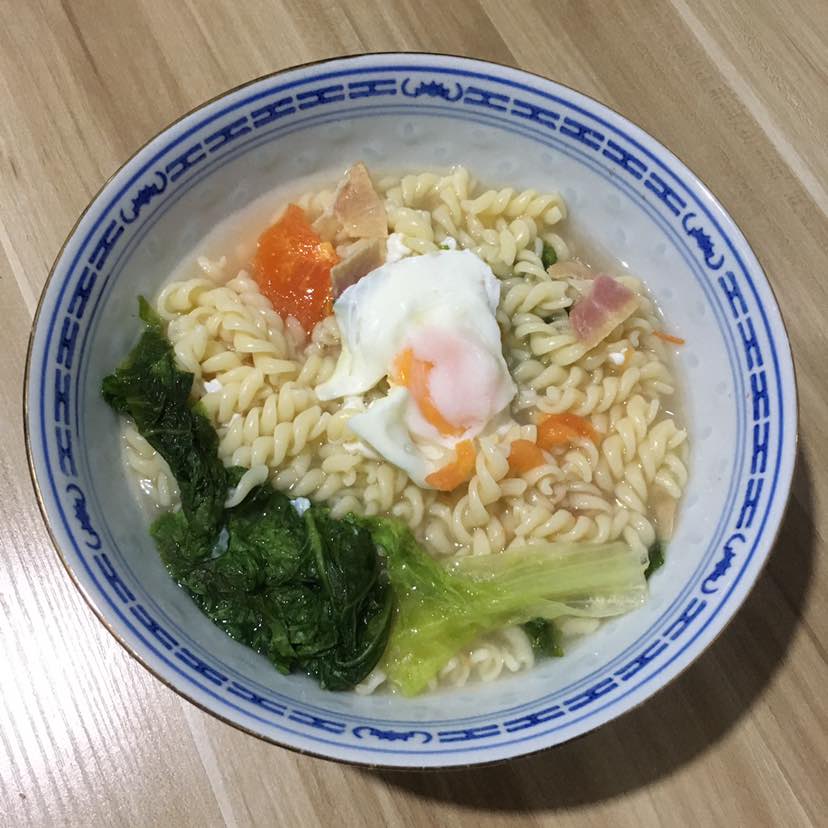 早餐:西红柿生菜肉片,鸡蛋螺丝通心粉