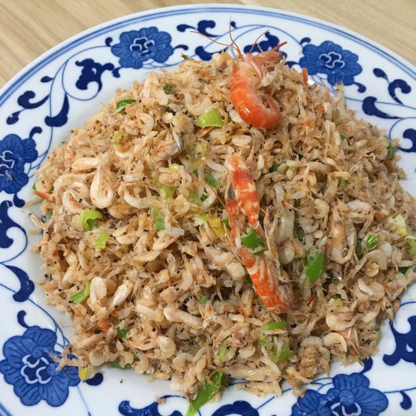 午餐:炒新鲜的雪虾🦐出锅放点葱末,特好吃😋