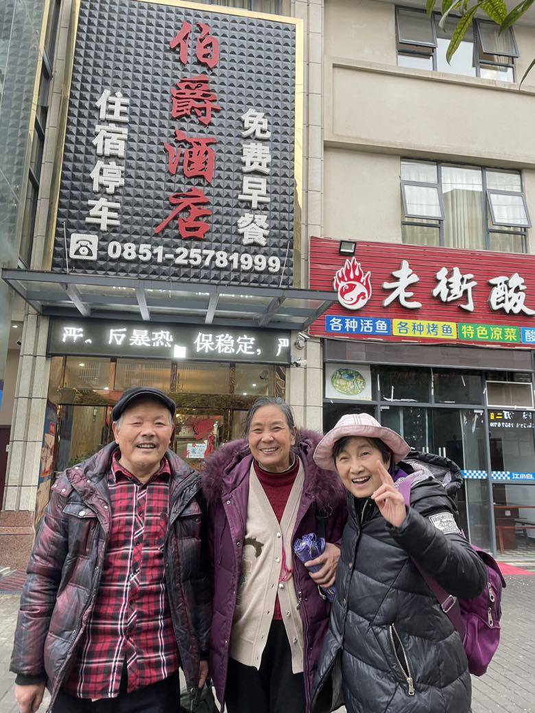 我先联系大姑,她正好在道真,让她去大伯伯家等我们,我两个堂姐也赶过去。一大家子又能在大伯家叙旧,相谈甚欢。今早大姑一大早送一袋核桃到酒店,礼轻人意重,图一是我爸妈和大姑的笑脸,血浓于水呀。