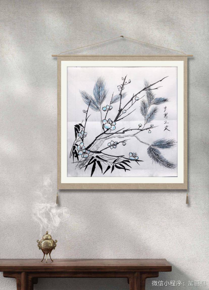 今天画的不好,松枝太胖了,加了个装饰外框!