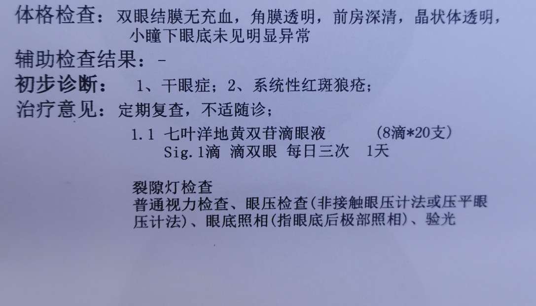 我10月确诊的,也说有干眼症还有视盘水肿跟屈光不正,假性视乳头水肿,但是视力没有变化所以医生自己悄悄在嘀咕可能是原发性的不是狼影响的