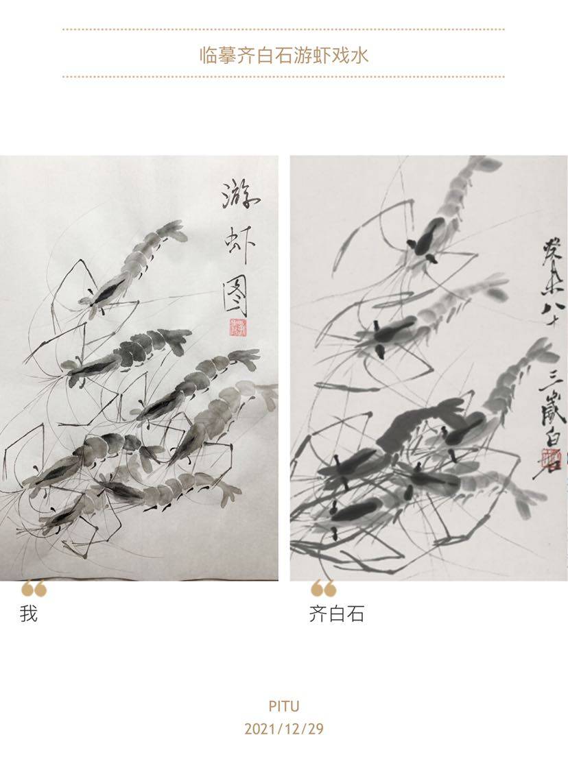 临摹齐白石先生的游虾戏水