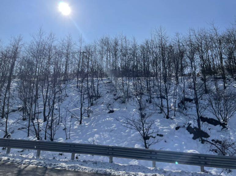 前几天的大雪还没完全融化,在车上欣赏阳光下的雪景也分外美丽,一路的雪景看不够,也欣赏雅西高速的超级工程。