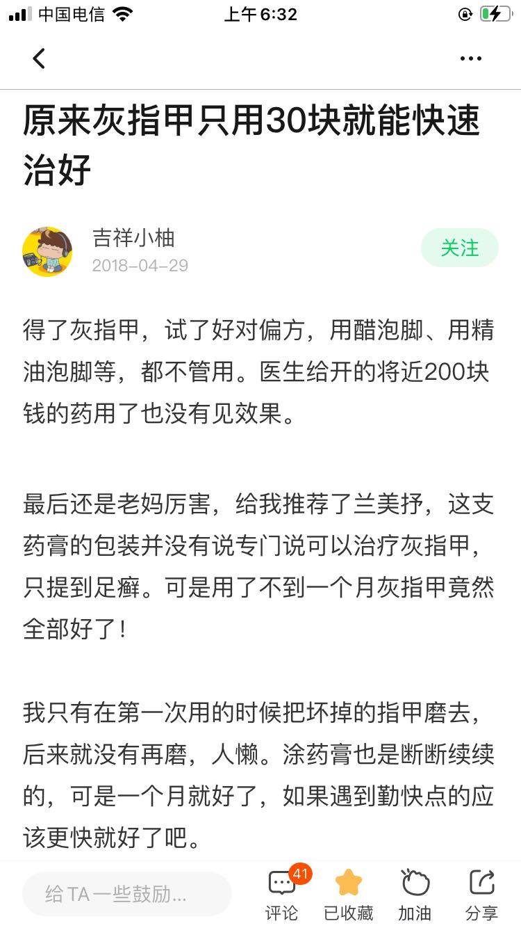 无心的白开水5170口服兰美抒对严重灰指甲更有效,不过有点贵,吃国产盐酸特比萘芬更实惠,成份一样,我二十多年的灰指甲就吃好了