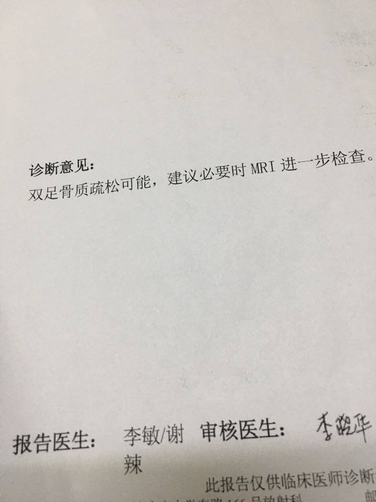拿着我双脚的Ⅹ光片及结果,然后问我,你是看什么呢?开那么多的化验单,看着这些结果,竟然不知道我是看什么,题外话,忽略吧。