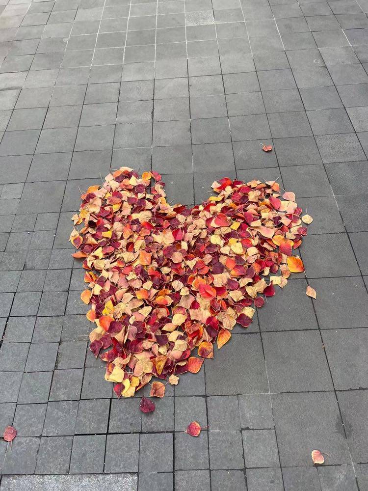 最后一张是我心心念念的上海。有人把落叶扫成了心形。朋友圈看到的特别喜欢💕