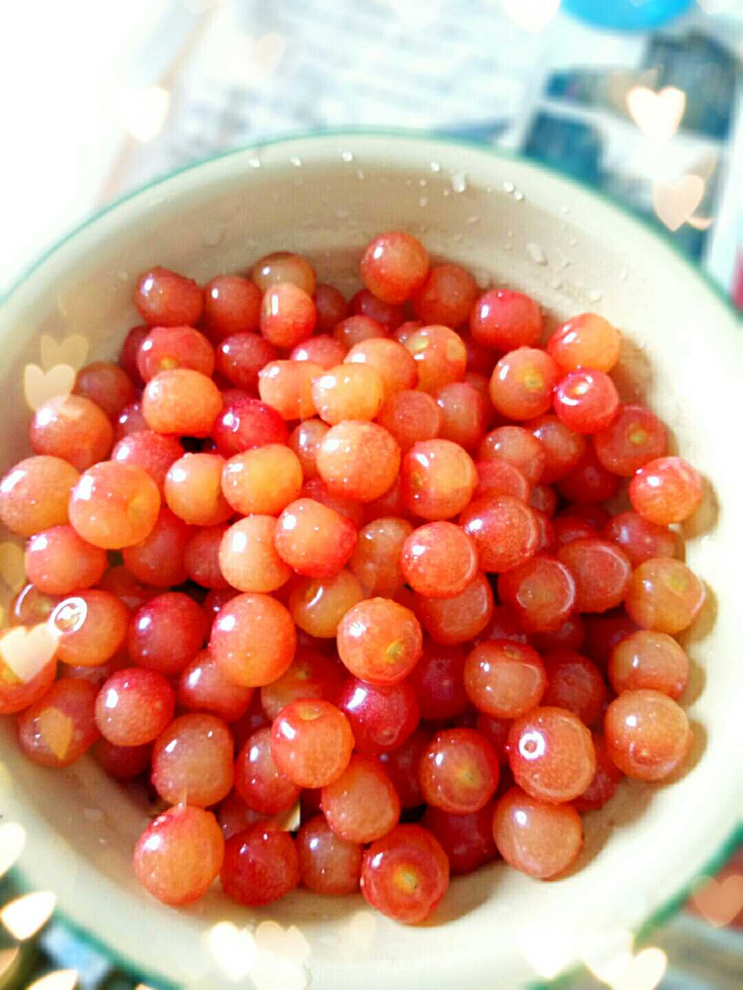 好漂亮的樱桃 没见过呢 好好吃的样子哦