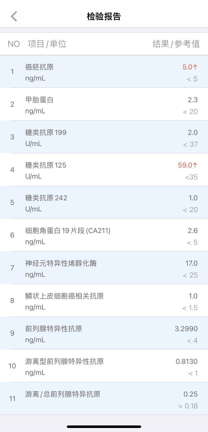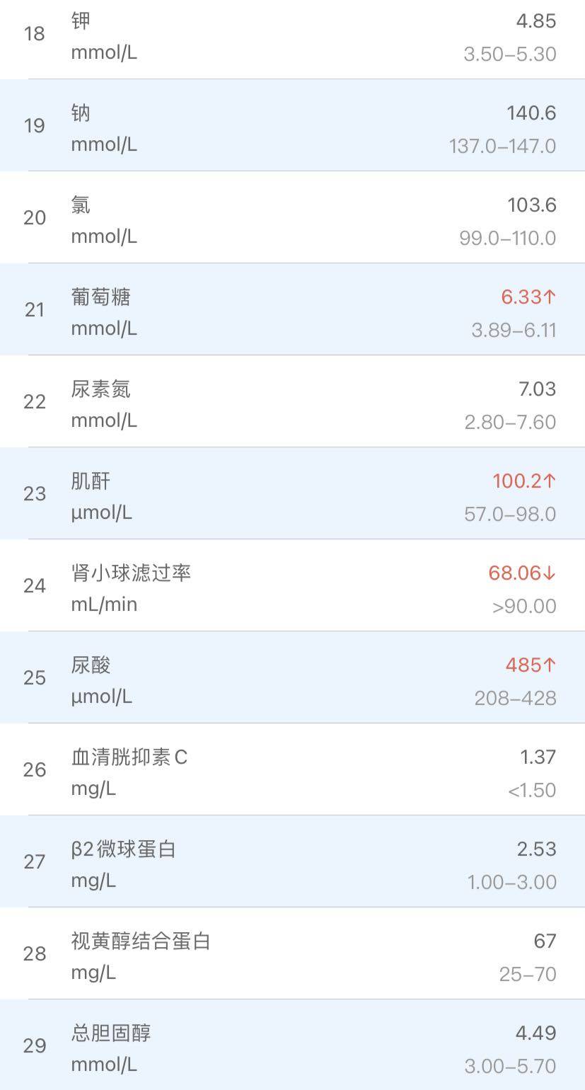 从指标来看,大部分都正常,肾比正常差一点,肿标有两个指标偏高,大主治认为没什么大问题。