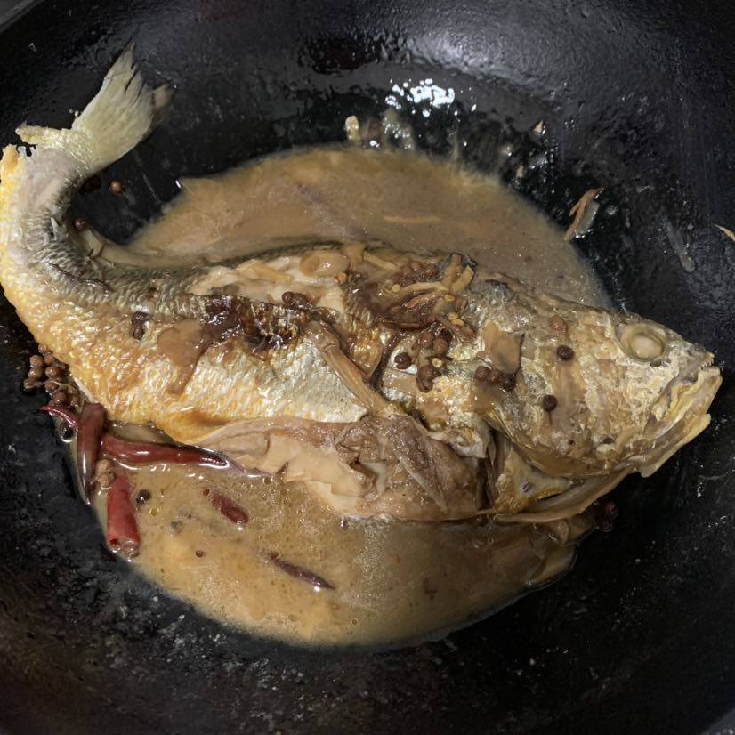 锅里在做一条鱼🐟(烧黄花鱼)不动筷不上桌,放在锅里。寓意年年有有余(鱼)这也都是父母在世时家里的老风俗。我也一直继承着,也算是一点念想吧……