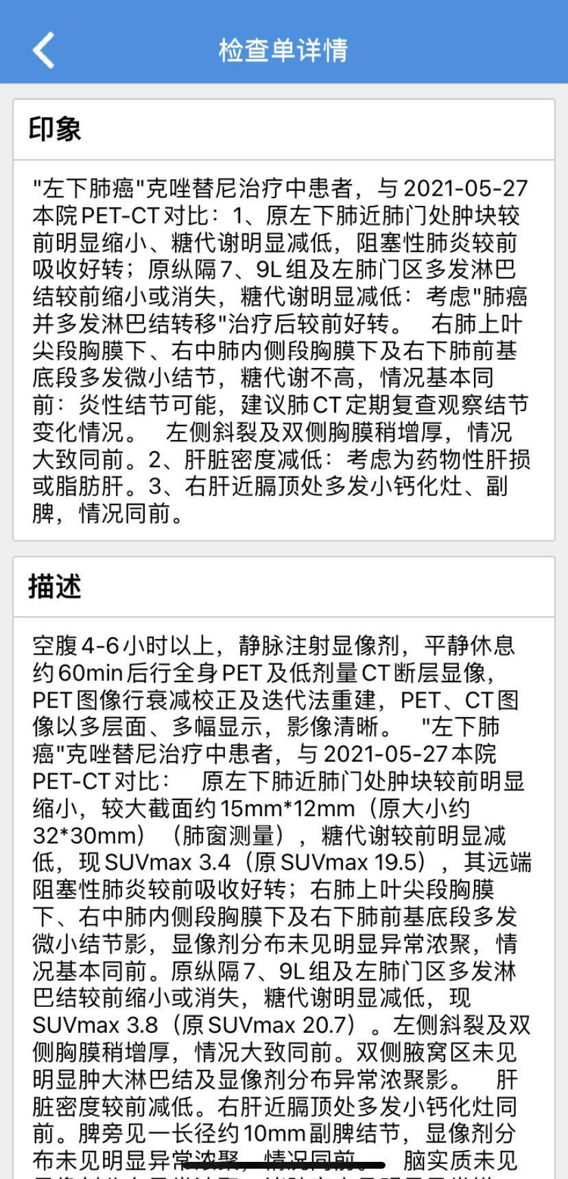 妈妈患肺癌已经有三年了,这三年来一直在接受治疗到现在,下面是妈妈检查以及治疗的过程。2010年10月,妈妈体检出肺癌IV期,纵隔淋巴转移,肝部转移,去省肿瘤医院复查,做了PET-CT,结果一样,省肿瘤