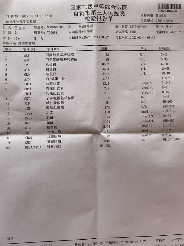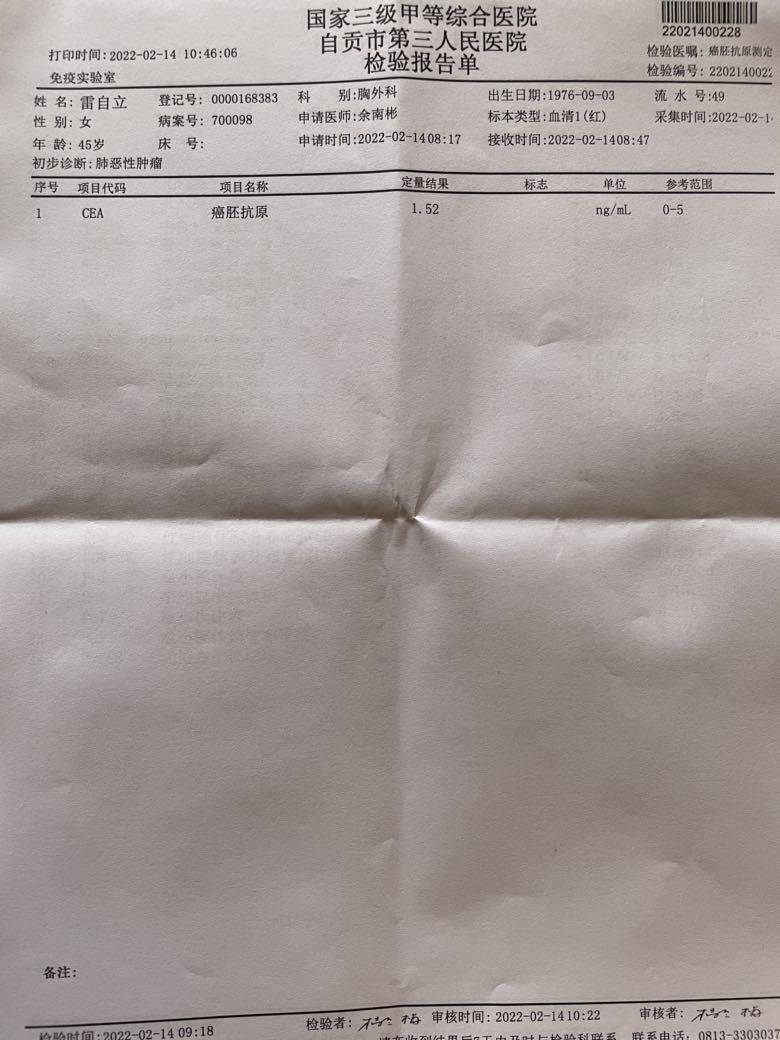 抽血检查很快就完成,Ct总是排长长的队,等了两个多小时才喊到我的号。相比华西医院Ct要一周才出结果,自贡的医院不到一个小时就出结果了。