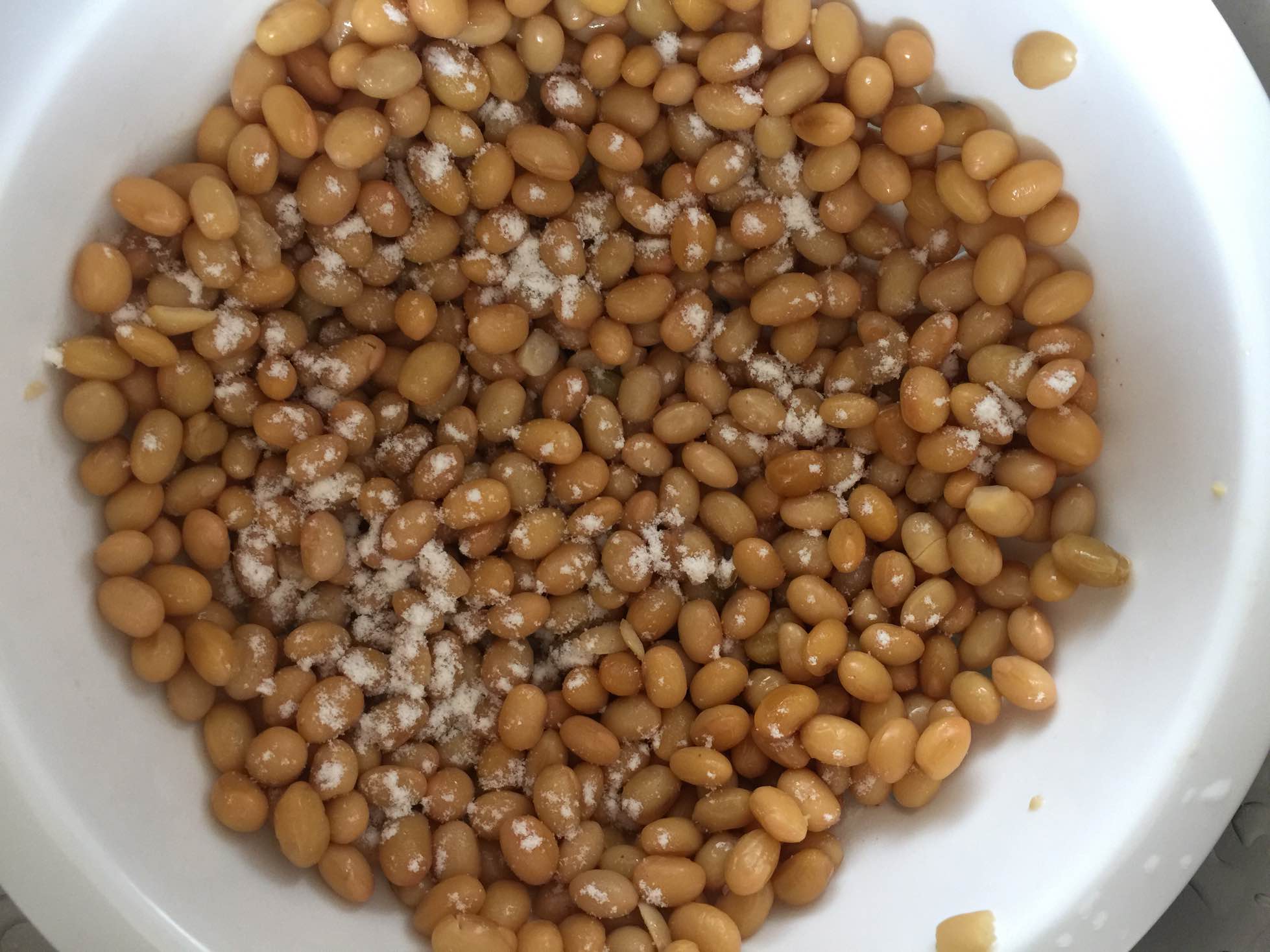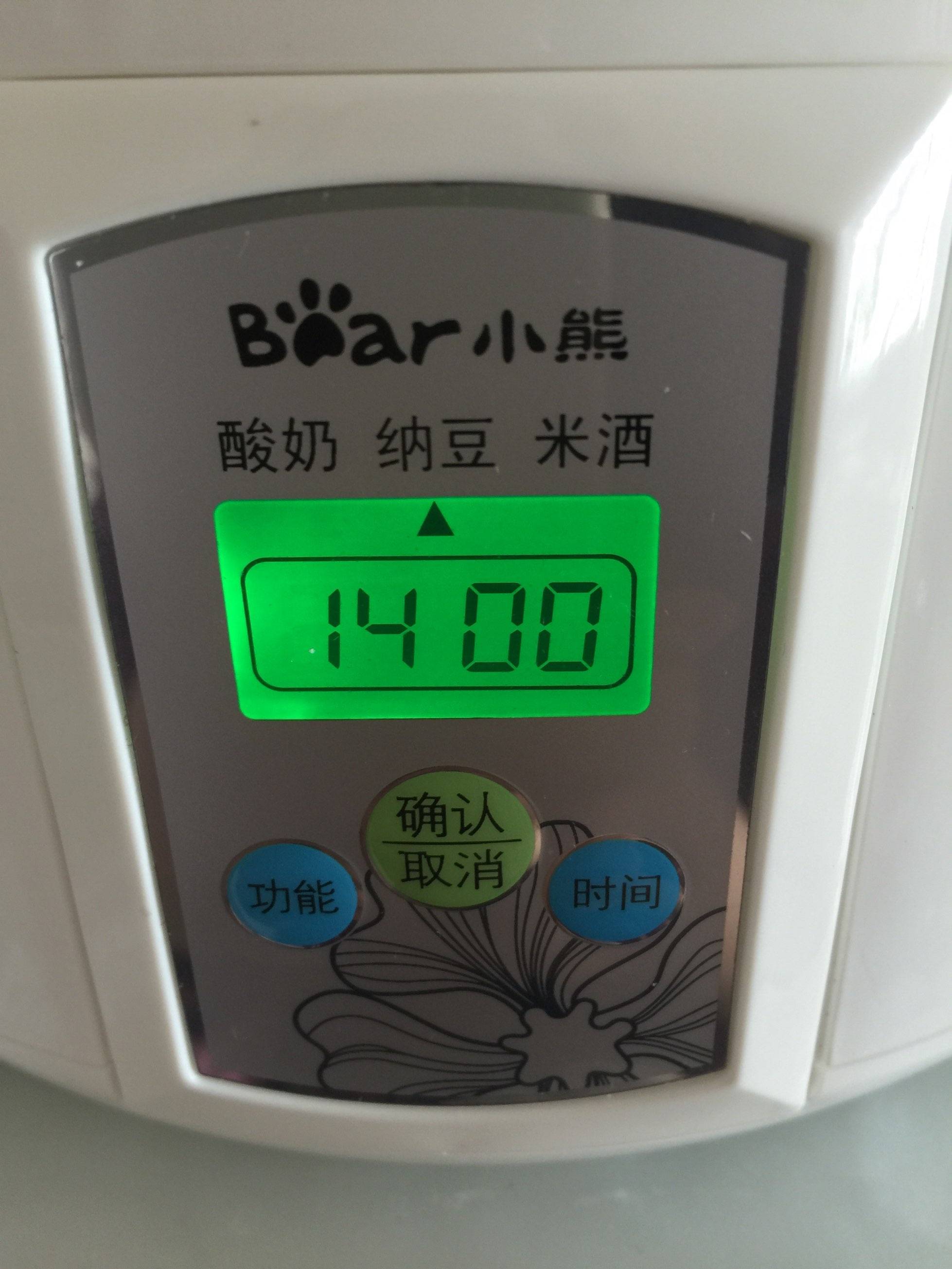 5、把准备好的菌粉撒在豆子上,拌匀,放进纳豆机,调好开关,14小时后美味营养健康的纳豆出锅啦!