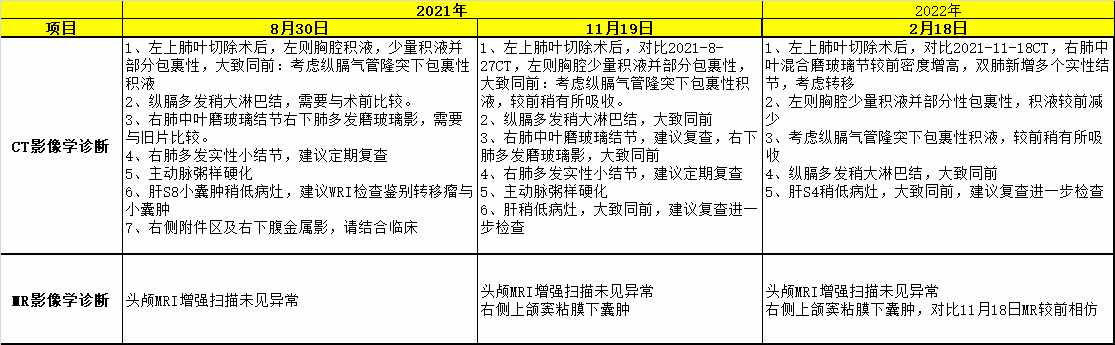 2-每三个月检查:胸部螺旋ct平扫+增强;肝胆胰脾螺旋ct平扫+增强;头颅MR增强扫描。