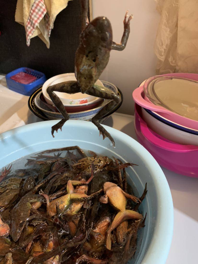 老王的朋友昨天晚上,从东北带回来5斤野生林蛙,这是老王的最爱。原本下班已经到家,朋友送到单位,我俩昨天晚上又回单位来住。为了吃也是拼喽😄