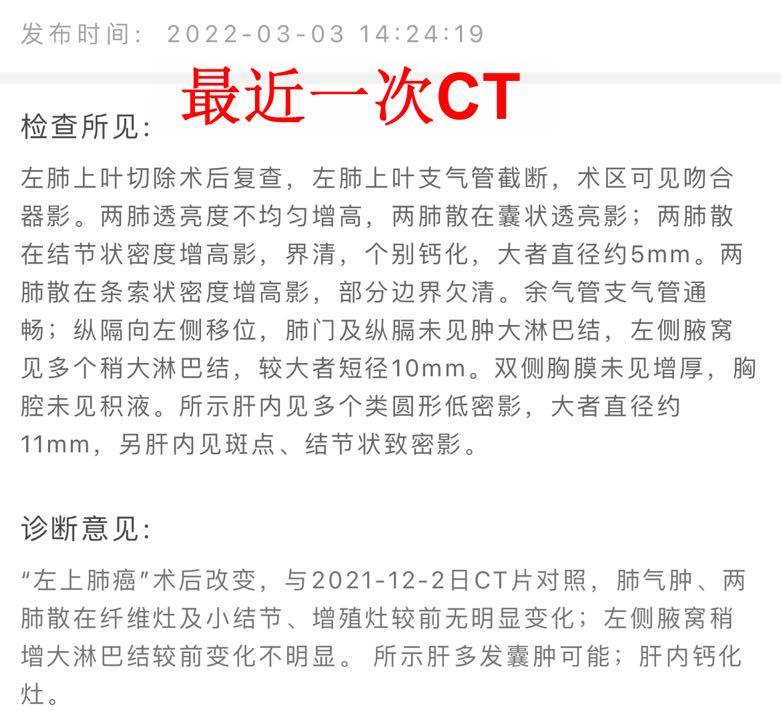 二是也有去咨询过一个胸外科的主任,他的建议是做一个派特CT,如果确认其他地方没有转移的话,直接做淋巴清扫,通过手术治疗,然后再结合靶向药或是化疗来后续治疗治疗。
