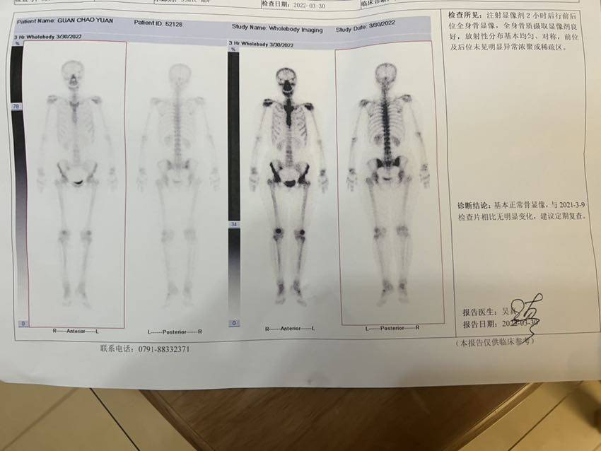 因为二月复查时没做ct平扫 ,然后骨扫描也一年多没做 ,总是这疼那疼,今天就一块做了,顺带又验了血,一切都好也就安心了,安心的情况对咱身心都好。疫情期间医院人少,一切顺利。