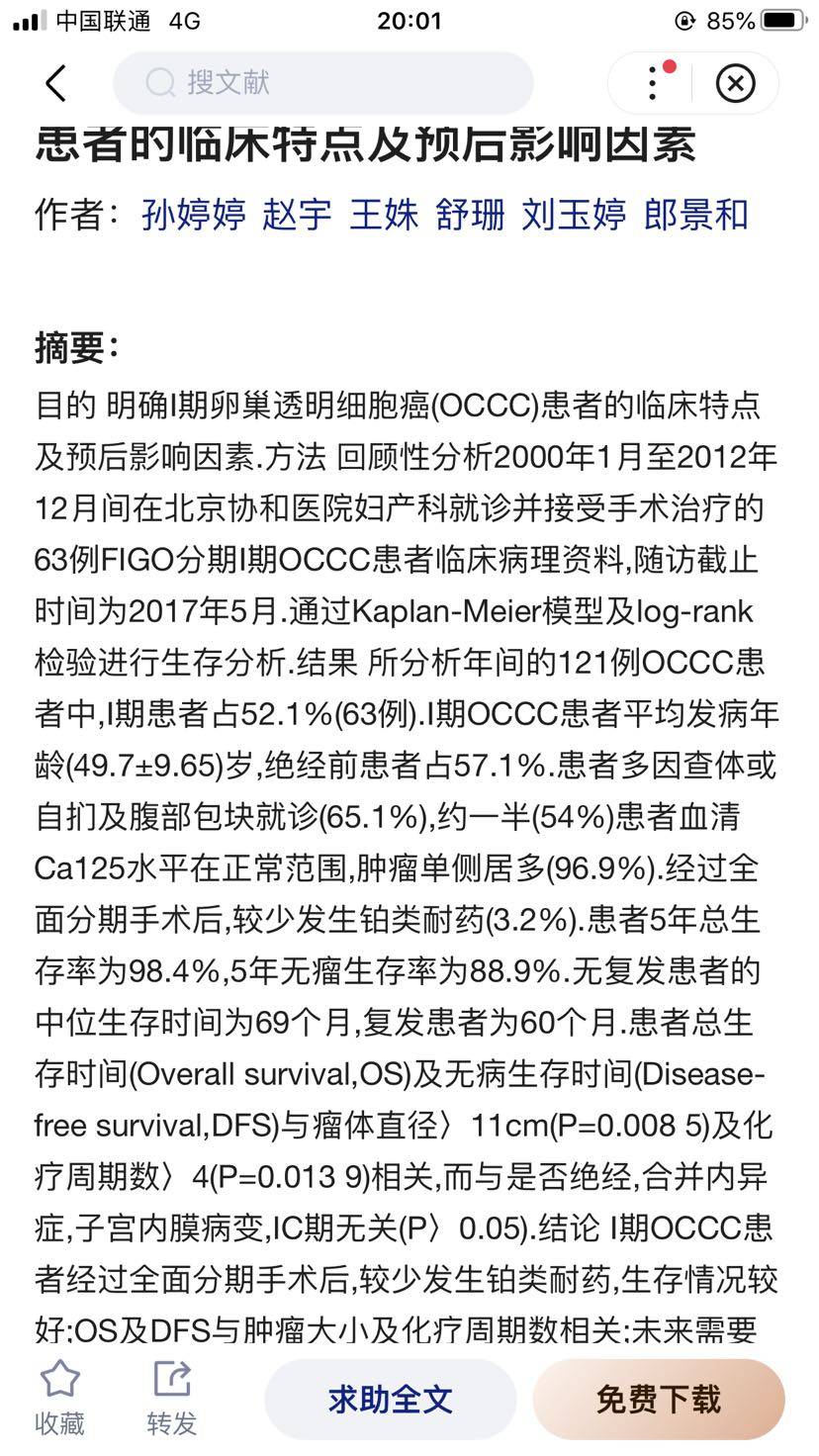 卵巢透明细胞癌早治疗效果好👍